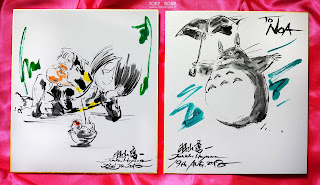Anche quest'anno sono arrivati gli auguri del sensei Hayama, splendidi, strabilianti, superlativi. Ho sempre avuto un debole per Kyashan e qui lascia davvero senza parole, che figodiddio! Alla mia nipotina Noa ha invece regalato 2 shikishi dove ha disegnato i suoi miti: Kitaro e Totoro, uno più bello dell'altro 💕