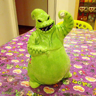 Una nuova biscottiera si è aggiunta alla mia collezione, ecco Oggie Boogie, il Bao Bao di Nightmare Before Christmas. E' davvero enorme e molto capiente, avoja a infilà biscotti! A seguire un particolare con gli insetti che fanno capolino 🐞